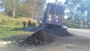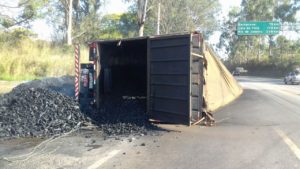 Tarde de quarta feira por volta de 16:00h Bombeiros de Conselheiro Lafaiete foram acionados para um combate a incêndio em uma carreta que transportava carvão vegetal.