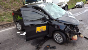 O Ka Sedan foi projetado para a direita e colidiu contra a frente do caminhão Ford Cargo branco GXA-7455 (Barbacena/MG) que vinha logo atrás no mesmo sentido do Ka Sedan, de Alfredo Vasconcelos para Barbacena.