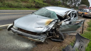 Com a colisão o veículo foi arrastado para fora da pista enquanto o motorista da carreta Mercedes Benz não conseguiu controlar o veículo saindo da pista de rolamento descendo por uma ribanceira de aproximadamente 30 metros.