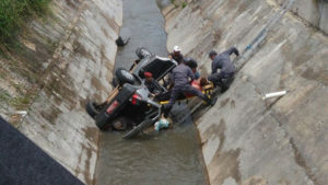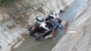 Início da tarde de hoje por volta de 12; 30h equipes de bombeiros de Barbacena foram acionados a comparecer a rua José Francisco Bias Fortes de Abreu altura do número 97 nas imediações do bairro São Sebastião, onde um taxista seguia pela rua em direção ao bairro do Funcionários quando foi atingido por um Veículo Gol, tendo 04 ocupantes que adentrava a via vindo a atingir o Uno que rodou na pista , atingiu a mureta de proteção , vindo a cair dentro do corrego.