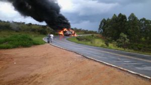 Com a colisão o motorista da carreta tanque conseguiu sair a tempo, entretanto o condutor do caminhão baú teve a frente de seu veículo mais atingido pelas chamas e seu condutor apresentava se com 60% do corpo queimado .