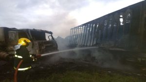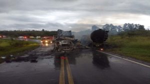 Quando em uma curva foi atingido pelo caminhão baú frigorifico pertencente a uma indústria de alimentos de placa AHL 4949, licenciado na cidade de Medianeira PR , que trafegava em sentido contrário, e que era conduzido por um motorista de 33 anos, procedente de Capanema/PR, que não conseguiu desviar seu veículo onde ambos colidiram frontalmente e em ato continuo se incendiaram.