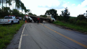 Com a colisão a caminhonete veio a ficar debaixo da carroceria da carreta e duas vítimas se encontravam presas entre as ferragens sendo um homem de 30 anos e o outro de 46 , ambos procedentes da cidade de Teixeira de Freitas na Bahia.