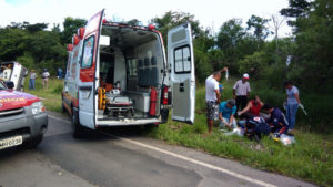 Imediatamente a equipe de Bombeiros avaliou, imobilizou e conduziu a vítima para o hospital para maiores avaliações.