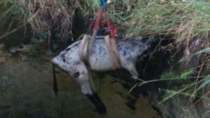 O animal, pesando cerca de 200kg, encontrava se deitado e não conseguia se mover.
