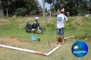 Foi acionada a Polícia Militar, que esteve presente no local (CAMPO DO VOLANTE) e registrou um BO para futuras providências.