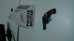 No interior do local alvo de denúncia, nada de ilegal foi encontrado. Contudo, durante varredura num terreno baldio próximo, região já conhecida pelos militares por se tratar de esconderijo de objetos ilícitos, localizou-se, em meio a 01 vegetação, 01 arma de fogo, identificada como sendo 01 revólver cal.32, desmuniciado.