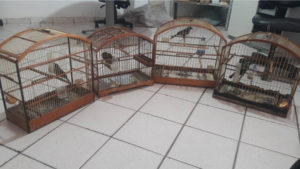 Em atendimento a denúncia de pássaros silvestres em cativeiro a PM do Meio Ambiente compareceu em uma residência no bairro Rio das Mortes em São João Del Rei onde na varanda dos fundos, várias gaiolas contendo calopsitas e canários belgas e mais duas gaiolas de madeira contendo em seu interior dois pássaros da fauna silvestre brasileira denominado trinca-ferro que estavam sem anilhas.