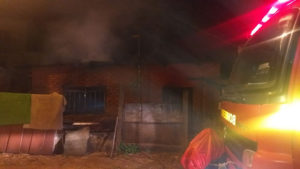 A equipe debelou o incêndio que queimou: 01 cama de solteiro, 01 beliche, 02 guarda roupas, 01 tv de 20 polegadas, 01 aparelho de som, portas, janelas e parte do telhado.