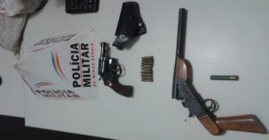 Diante da situação, rapidamente, os policiais militares foram até lá, averiguaram o saco deixado por P.J. , sendo constatado que, em seu interior, havia 02 armas de fogo, as quais foram aporeendidas.