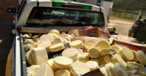 Foram também apreendidos 800 Kg dos mesmos queijos sendo estes levados para a estação de transbordo do município de Barbacena por estarem em estágio avançado de putrefação.