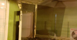 No bloco foi verificado que o incêndio concentrava se nesta parte, proveniente da queima de roupas, colchões e materiais pertencentes a andarilhos, que não se encontravam no local e queimava uma porta e as paredes.