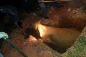 Infelizmente um segundo animal veio a cair em uma outra sapata no canteiro de obras no mesmo instante e acabou falecendo não tendo como ser salvo pelos bombeiros que o retiraram e o deixaram ao cuidados de seu proprietário.