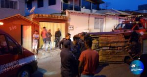 Onde houve o capotamento de um veículo Corsa que era conduzido por um homem de 40 anos que na chegada dos Bombeiros ao local disse que transitava na referida rua quando por motivos desconhecidos perdeu controle direcional de veículo tendo o mesmo capotado e atingido também um veículo Vectra que se encontrava estacionado às margens da via pública.