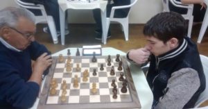 Tudo fica igual no tabuleiro, mesmo com a diferença de 70 anos separando as gerações. À esquerda o chileno Ceveriano Fernandes, de 83 anos, em partida contra João Pedro Salim, de 13, em torneio disputado na cidade de Juiz de Fora.