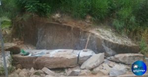 Compareceram no local, onde depararam com um indivíduo realizando extração de uma pedra caracterizada por formação rochosa típica de arenito.