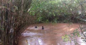 No local os bombeiros verificaram que as águas estavam turvas, barrentas e com forte correnteza, e após a indicação de moradores iniciaram os trabalhos de mergulho sendo encontrado em pouco tempo o veículo.