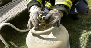 Diante disso os bombeiros realizaram uma vistoria no botijão, que estava com o pino de segurança rompido, e também na área sinistrada sendo repassado ao solicitante as orientações de prevenção para se evitar este tipo ocorrência.