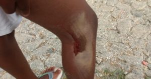 Onde segundo a solicitante de 34 anos, seu filho de 11 anos distraiu-se quando brincava na rua pisando no bueiro entre os vãos dos dormentes de concreto que mediam aproximadamente 15 cm de espessura vindo sua perna a passar além do joelho ficando presa não conseguindo retornar devidos escoriações que apresentava