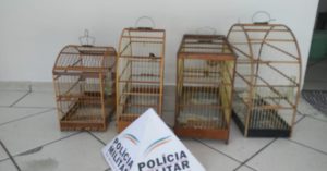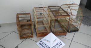 MATERIAIS APREENDIDOS: 04 Gaiolas de madeira e 04 pássaros da fauna silvestre.
