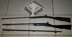 Em 13/05, durante a Operação “Batida Policial”, após denúncia, militares deslocaram-se à localidade de Monteiro, próximo à ponte que lhe dá acesso. Os militares encontraram, encostado em uma árvore: 02 (duas) espingardas (tipo polveira) e um cano. Os objetos foram apreendidos e encaminhados à Delegacia.
