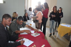 Com um brilho de esperança no olhar, alguns usuários do Pão & Beleza foram autografando os livros e entregando aos que adquiriram a obra.
