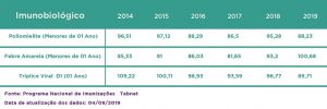 Dados do estado mostram que a cobertura vacinal para determinadas doenças não alcançaram, em determinados anos, a meta de 95%. “A saúde é responsabilidade de todos e, por isso, o cartão de vacinas deve ficar atualizado. O Calendário Nacional de Vacinação contempla não só as crianças, como também adolescentes, adultos, idosos, gestantes e povos indígenas”, frisa Josianne Dias Gusmão. A população deve buscar as vacinas disponíveis nas salas de vacinação, nas Unidades Básicas de Saúde (UBS).