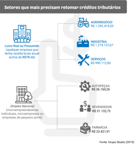 Segundo o Grupo Studio, consultoria de recuperação de crédito, cerca de 95% das empresas pagam mais impostos do que deveriam. O número é baseado em um estudo realizado pela própria companhia, entre 2013 e 2017, que revela que o valor excedente de impostos recuperável ultrapassou R$ 1 bilhão. A média de recuperação de créditos tributários é de R$ 703 mil. O Grupo Studio ouviu 3200 empresas espalhadas pelo país.