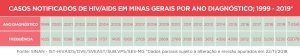 Em Minas Gerais, entre 1999 e 2019, até o momento, foram notificados 62.078 casos de HIV/Aids. Em 2019, foram notificados 3.516 casos da doença. Desses, a faixa etária mais acometida é a de jovens entre 20 a 34 anos. “A infecção pelo HIV/Aids no público mais jovem vem aumentando consideravelmente nos últimos 10 anos. Isso se dá devido ao fato dessas pessoas estarem numa fase sexualmente ativa e, muitas vezes, com múltiplos parceiros, diminuição do uso do preservativo, além do uso de drogas e álcool também ser mais comum nessa faixa de idade”, comenta Mayara.