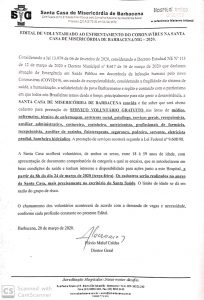 A Santa Casa de Misericórdia de Barbacena, mediante a situação de Emergência em Saúde Pública, por conta da decorrência da infeccção humana pelo novo Coronavírus, causador da COVID-19, publicou ontem (20/03), um edital de voluntariado gratuito.