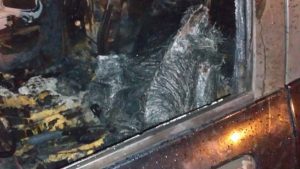 Imediatamente ele parou o veículo em local seguro, acionou o Corpo de Bombeiros que chegando ao local debelaram às chamas que queimaram por completo o interior do veículo e a parte frontal.