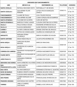 As Unidades funcionam de 7h às 17h, de segunda a sexta-feira. O atendimento médico é realizado de 7h às 11h e 13h às 17h, exceto na zona rural que faz horário de 8h às 16h.
