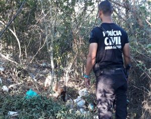Durante a busca realizada no primeiro alvo o cão Balto, do Canil da Polícia Civil, ao vistoriar uma área de mata nos fundos da residência marcou um entulho de folhas, dando sinal característico de localização de droga, sendo encontrada uma latinha com algumas porções de maconha e crack.