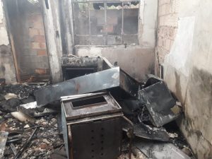 No local os bombeiros verificaram tratar-se de uma casa de 6 cômodos onde as chamas atingiram todos os cômodos da casa; quartos, sala, cozinha e banheiro.