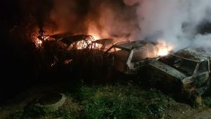 Os bombeiros verificaram que diversos veículos estavam se incendiando em um depósito de sucatas onde tiveram bastante trabalho para controlar as chamas sendo gastos ao final cerca de 4000 l de água e verificado que 10 veículos foram destruídos pelo incêndio.