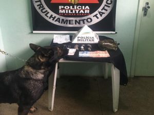 As buscas na casa foram procedidas com o auxílio de um cão farejador e assim, a Polícia Militar