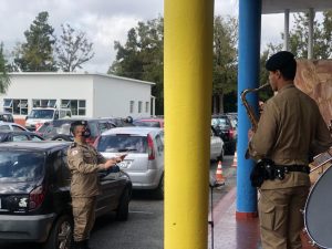 Teve início na manhã de hoje (04), no pátio do 9º Batalhão de Polícia Militar, em Barbacena, o processo de vacinação contra a Covid-19 para pessoas com 60 anos ou mais através do sistema drive thru. Enquanto esperam por sua vez, as pessoas podem apreciar uma boa música já que foram recepcionadas pela Banda de Música da 13ª Região da Polícia Militar.