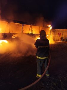 No local a equipe deparou com dois veículos da empresa, tomados pelo fogo onde as labaredas atingiam 4 metros , sendo que de imediato foi dado início ao combate às chamas.