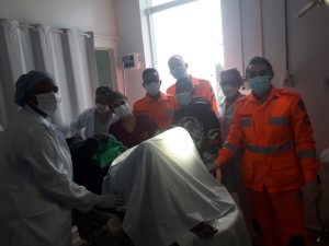 Desta forma chegaram até a entrada da Santa Casa de Misericórdia onde imediatamente efetuaram o acionamento da equipe de Obstetrícia do hospital; entretanto neste intervalo o bebê veio a nascer dentro da prancha( maca) do Corpo de Bombeiros já entrando no corredor do Hospital Santa Casa de Misericórdia onde mãe e bebê foram entregues aos cuidados médicos da equipe de Obstetrícia sendo efetuado os trabalhos finais de parto onde a gestante deu à luz a um menino que nasceu saudável.