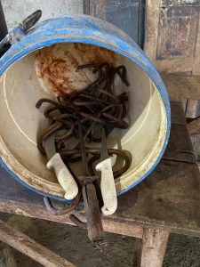 No local, as equipes foram recebidas por dois funcionários que autorizaram a entrada. De imediato, foram detectados no curral, diversos vestígios de sangue e ferramentas utilizadas para abate de animais. Numa mesa com vestígios de sangue, estavam facas de açougue, amoladores, ganchos de prender os animais e um machado sujo de sangue.
