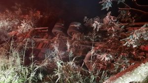 O veículo estava lateralizado as margens da rodovia em meio a vegetação e apoiado por uma árvore de grande porte que veio se quebrar com o impacto. No local já se encontrava equipes da polícia rodoviária e do Samu.