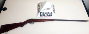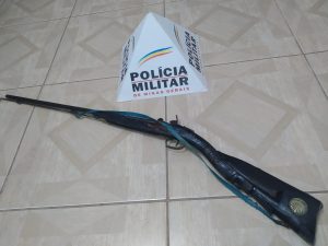 Os militares foram ao local e encontraram uma espingarda de fabricação caseira escondida junto a uns blocos de cimento num curral abandonado as margens da estrada que dá acesso a localidade de Ribeirão. A arma foi apreendida e encaminhada para a Delegacia.