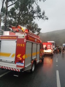 Já o condutor do veículo,de 64 anos, marido da passageiro, encontrava-se preso dentre as ferragens e apresentava traumatismo crânio-encefálico gravíssimo, sendo conduzido inconsciente ao Hospital Regional por uma equipe do SAMU;