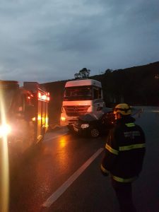 Onde segundo seu condutor de 51 anos, seguia pela sua mão de direção e chovia bastante no momento do acidente, quando o veículo Uno , que seguia no sentido a São João del Rei surgiu em uma curva desgovernado, rodando na pista vindo a atingir a parte lateral esquerda da cabine do caminhão.