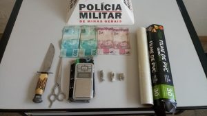 O denunciado (20 anos) pela prática ilícita foi abordado com 03 (três) buchas de maconha e a quantia de R$ 210,00 (duzentos e dez) reais em dinheiro. Ampliando as buscas em sua residência, a Polícia Militar apreendeu 01 (uma) balança de precisão, 01 (uma) faca e 01 (uma) tesoura com resquícios de droga, além de vários materiais utilizados para embalar entorpecentes. O abordado foi preso em flagrante e conduzido.