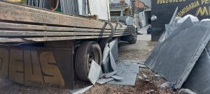 Manhã desta quinta-feira por volta de 08:40 h , equipes de bombeiros de Conselheiro Lafaiete foram acionados a comparecer à Rodovia BR 040 na altura do bairro Carijós naquela cidade onde um houve um acidente em uma marmoraria onde uma equipe trabalhava na descarga de pedras de ardósia da carroceria de um caminhão .