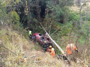 O veículo Ford Fiesta, de Cor vermelha de Barbacena-MG, que seguia sentido Juiz de Fora Barbacena saiu da pista após o condutor perder o controle direcional, colidiu em uma árvore e caiu em uma ribanceira.